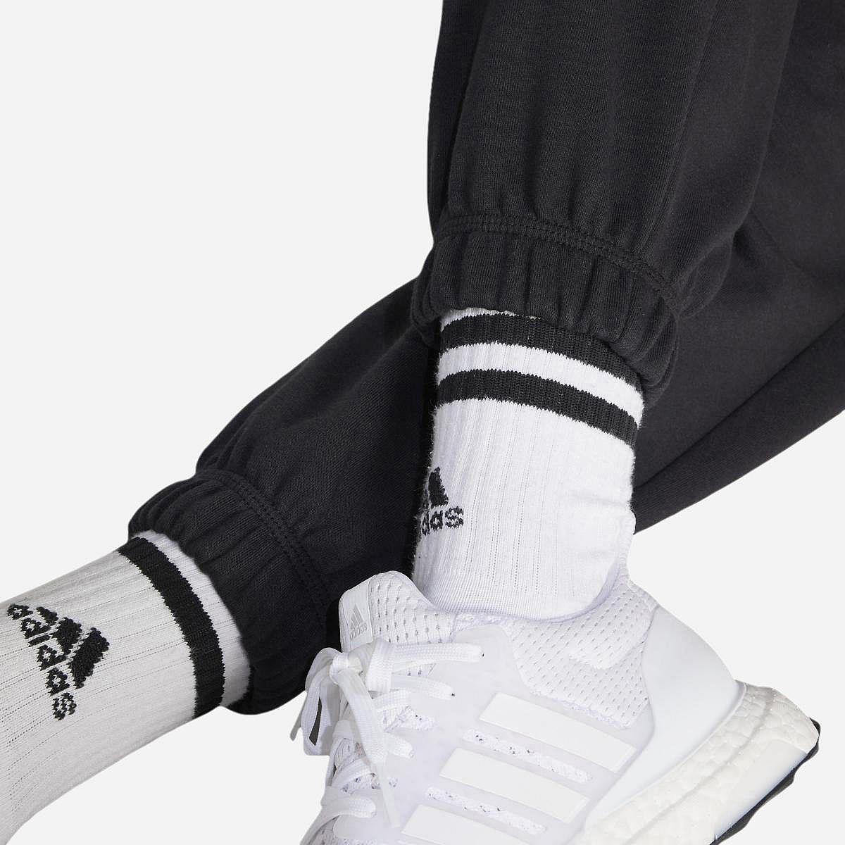 De Essentials Linear French Terry Joggingbroek van Adidas is de perfecte keuze voor de ontspannen momenten van je weekend. Deze broek is gemaakt van zachte sweaterstof, wat zorgt voor een comfortabele pasvorm, of je nu aan het relaxen bent of actief bezig bent. Dankzij de strakke boorden blijft de broek mooi zitten, zodat je je sokken of sneakers volop kunt showen zonder dat de pijpen omhoog kruipen.