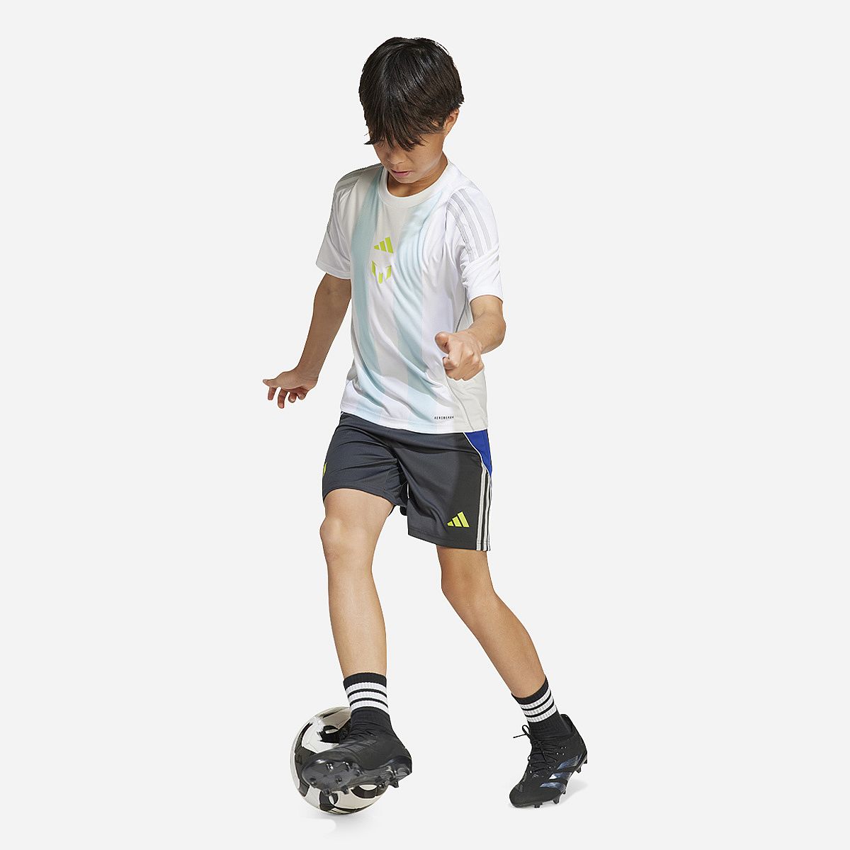 - Het Messi-logo op de borst laat zien dat je in de voetsporen van een voetbalicoon wilt treden.