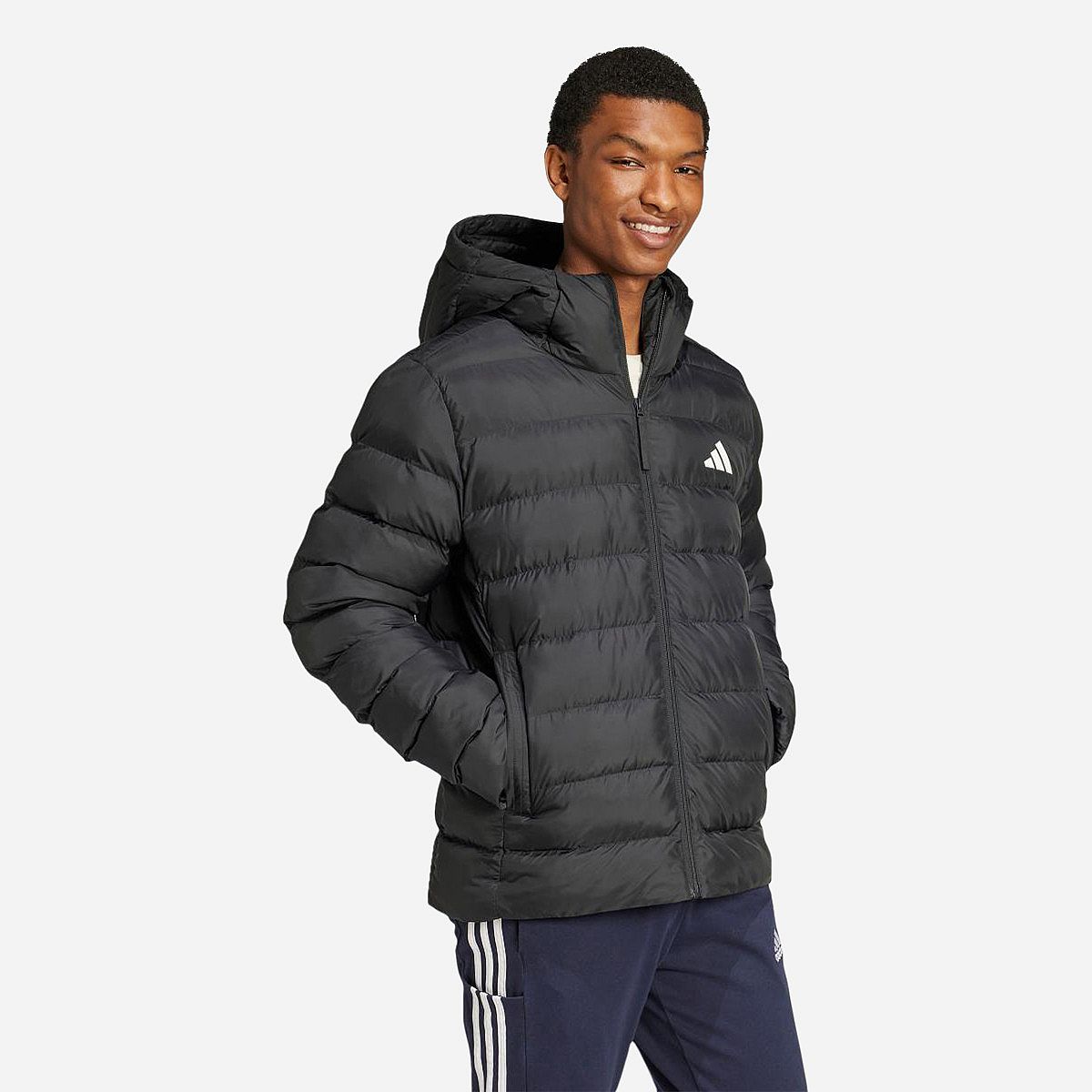 Trotseer de elementen met het adidas capuchonjack, een lichte maar stevige jas die je warm houdt, of je nu de natuur intrekt of de stad in gaat. Dankzij de ritszakken heb je een veilige opslagplaats voor al je essentiele spullen, zodat je met een gerust hart op pad kunt.