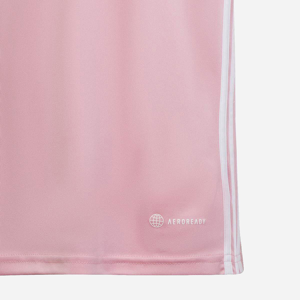 Blijf altijd op je best met dit junior adidas voetbalshirt, dat zich kenmerkt door de iconische 3-Stripes en het 3 Bar Logo. Dankzij de vochtabsorberende AEROREADY-technologie en de ademende mesh-mouwen blijf je tijdens de hele wedstrijd droog en comfortabel.