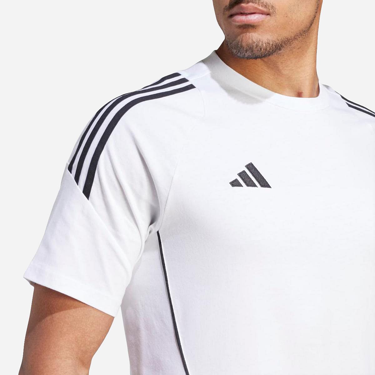 Geef je voetbaltraining een boost met dit comfortabele T-shirt! Zodra je klaar bent met je intensieve sessie, is dit T-shirt perfect om in te relaxen en stijlvol te recupereren. Het is onderdeel van de adidas Tiro 24-collectie, met een 3 Bar Logo op de borst en 3-Stripes op de schouders, waardoor je jouw sportieve stijl laat zien.