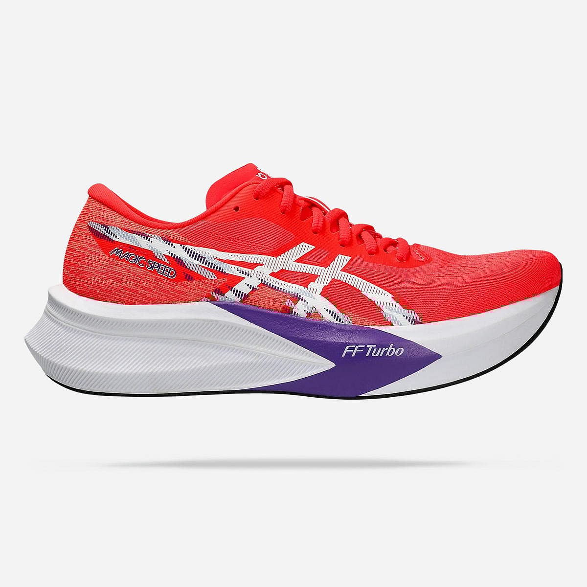 De MAGIC SPEED 4 hardloopschoenen voor heren zijn de ideale keuze voor elke atleet die zijn racedoelen wil behalen. Deze schoenen zijn ontworpen voor optimale demping en stabiliteit, waardoor je elke stap met vertrouwen kunt zetten. De vernieuwde FF TURBO-demping biedt extra energie tijdens je trainingen en wedstrijden, terwijl de gevormde koolstofplaat zorgt voor een soepelere en krachtigere afzet.