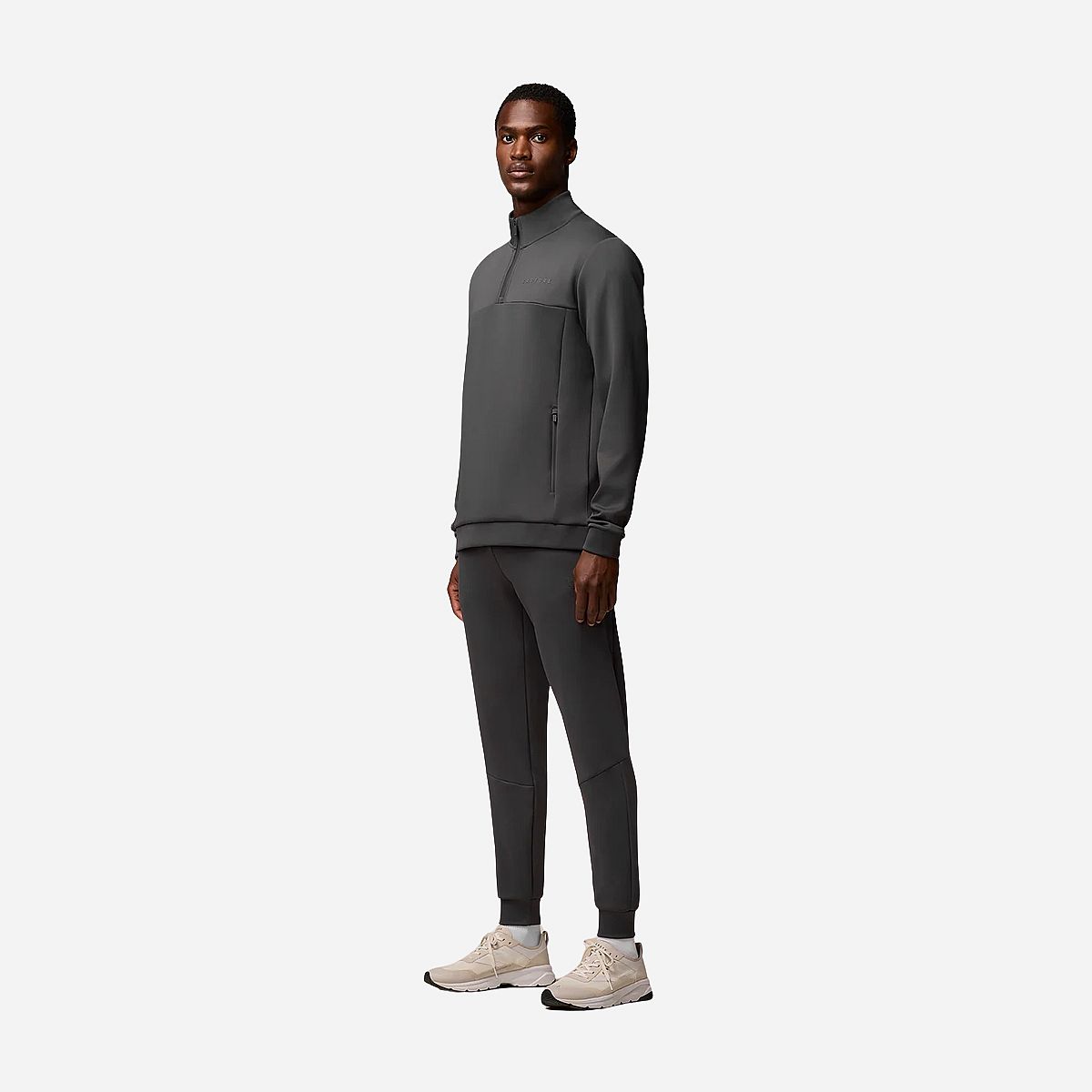 - Kwartondelige rits biedt aanpasbare bedekking en ventilatie tijdens intensieve activiteiten.