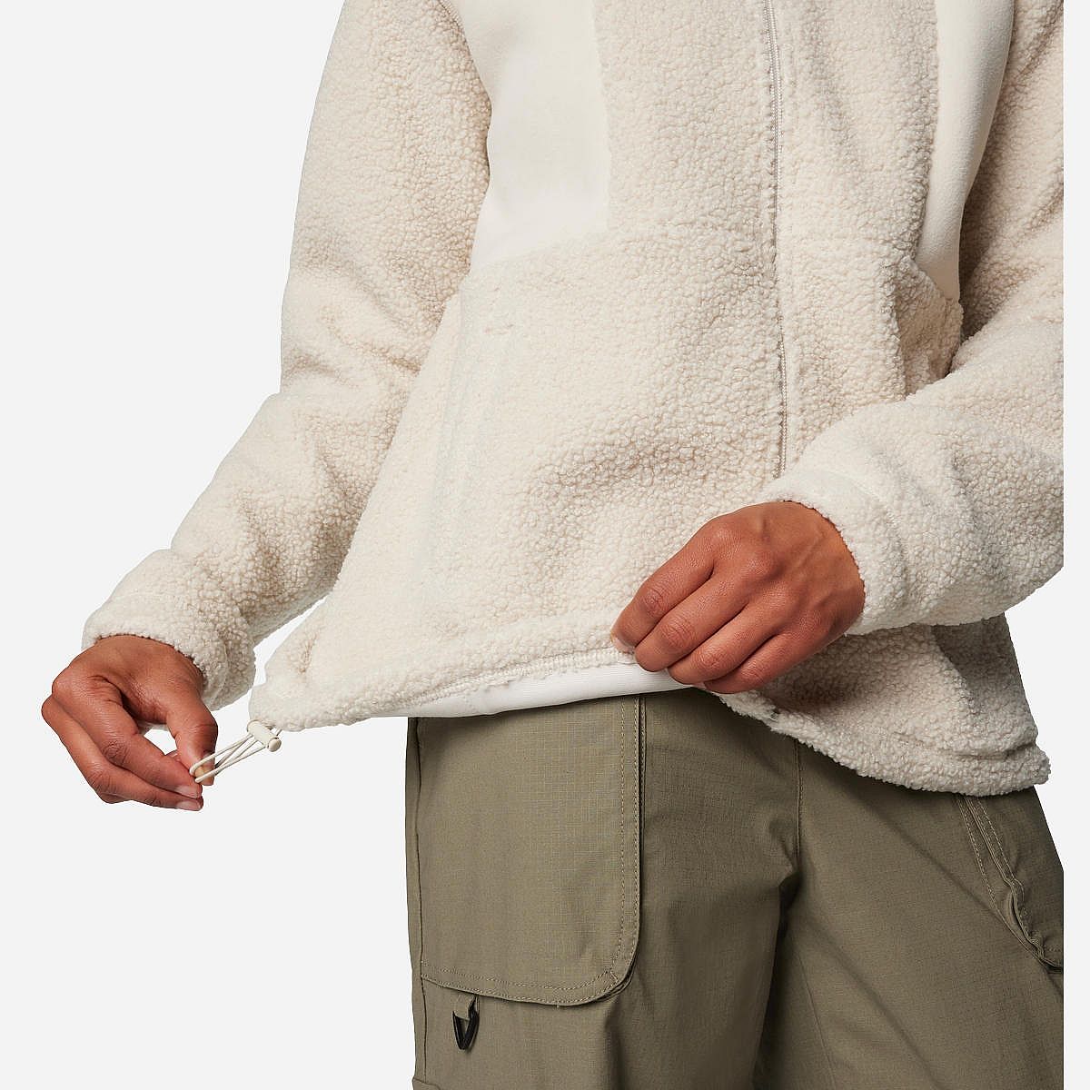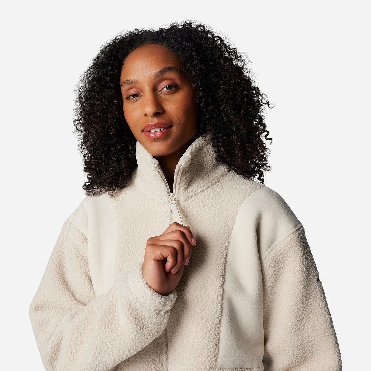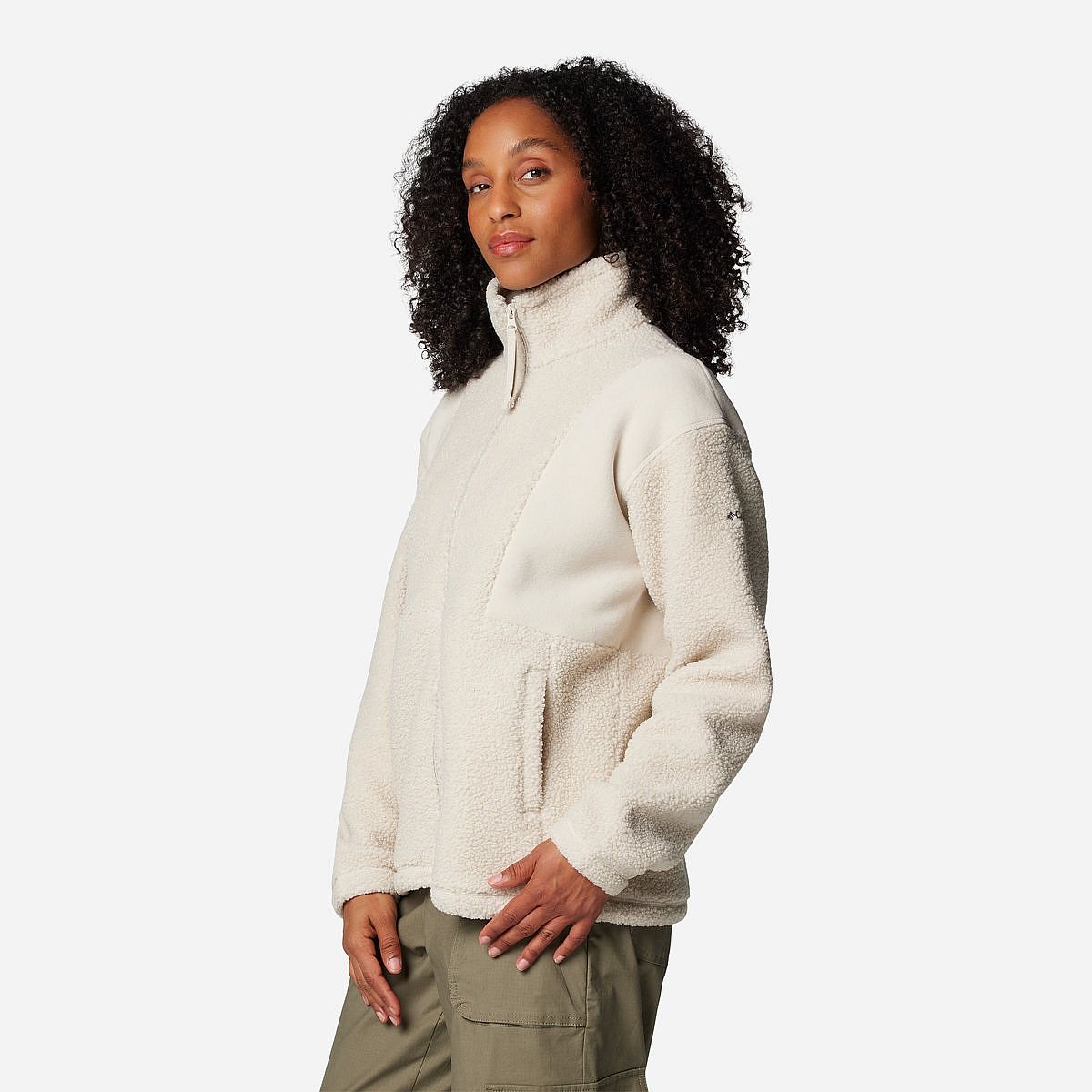 - Verwarmend sherpa fleece met een hoge kraag om je goed af te schermen.