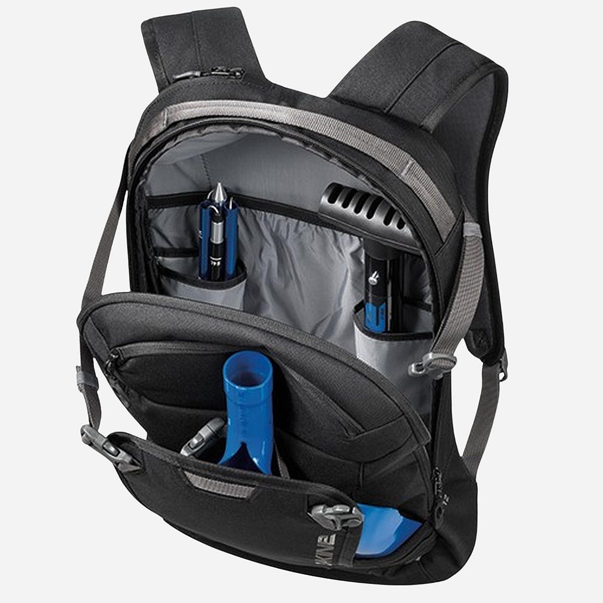 - De rugzak is vervaardigd uit gerecycled polyester, wat bijdraagt aan een duurzamer milieu.