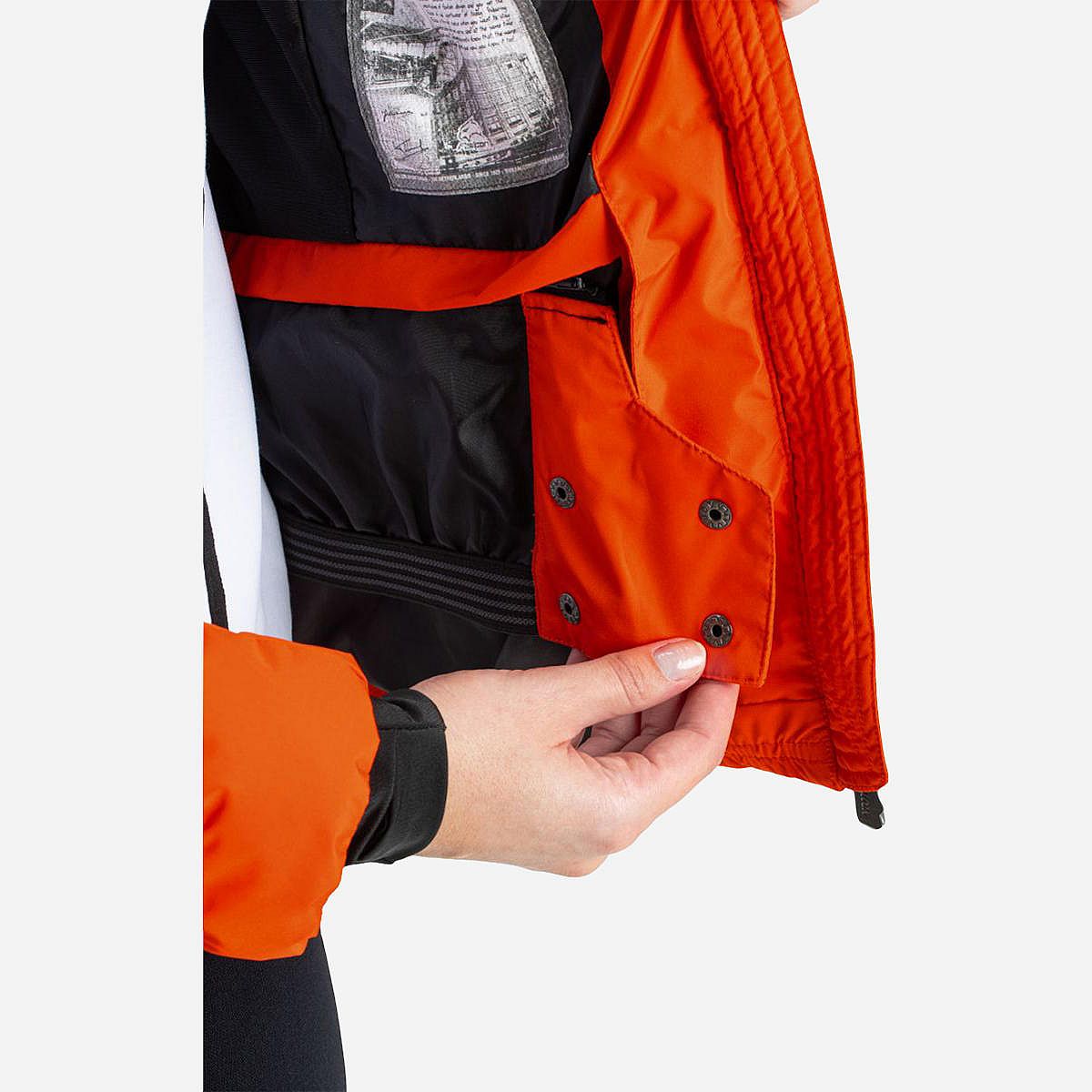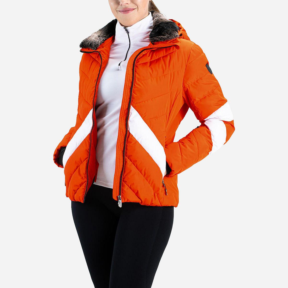 Dit dames ski-jack is gemaakt van lichtgewicht pongezijde en biedt uitstekende isolatie dankzij de zachte vulling van namaakdons. De jas is voorzien van een handige uitneembare binnenkraag van kunstbont, die zorgt voor extra warmte. Daarnaast is er een zakje met rits in de mouw voor je skipasje, en beschikt de jas over een uitneembare sneeuwvanger en een afneembare capuchon.