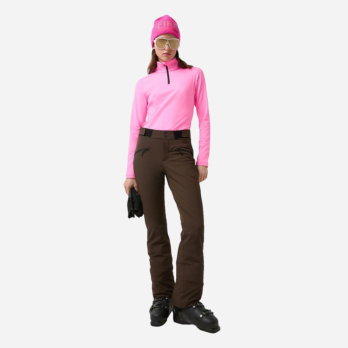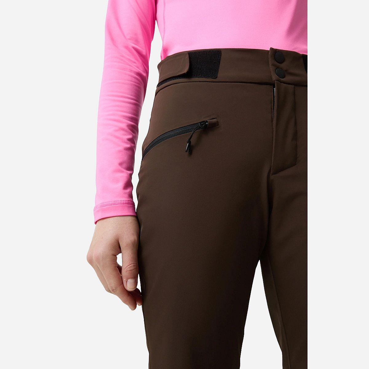 - Elastische zijbanden en een normale pasvorm bieden volledige bewegingsvrijheid voor sportieve bochten op de piste.