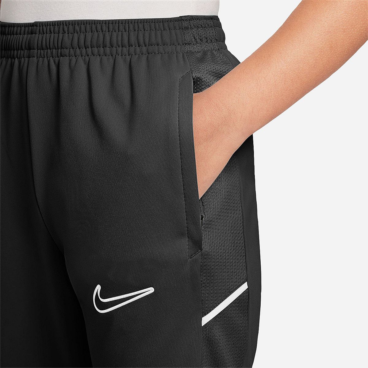 De Nike Academy Dri-FIT Broek voor Junioren is de perfecte keuze voor actieve jongens die altijd in beweging zijn. Deze broek is ontworpen om het spel te ondersteunen met zijn ademende, zweetafvoerende stof, zodat je jongen comfortabel blijft of hij nu op het veld staat, met vrienden speelt of gewoon lekker aan het rondhangen is.