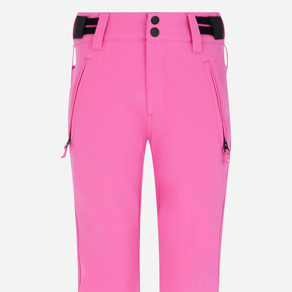 - Kenmerken: rekbare softshell, verstelbare tailleband met buitenbandjes, elastische enkels, ritszakken