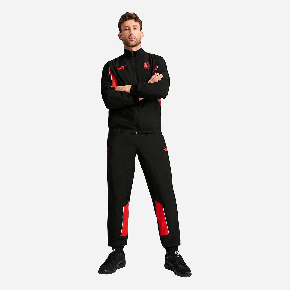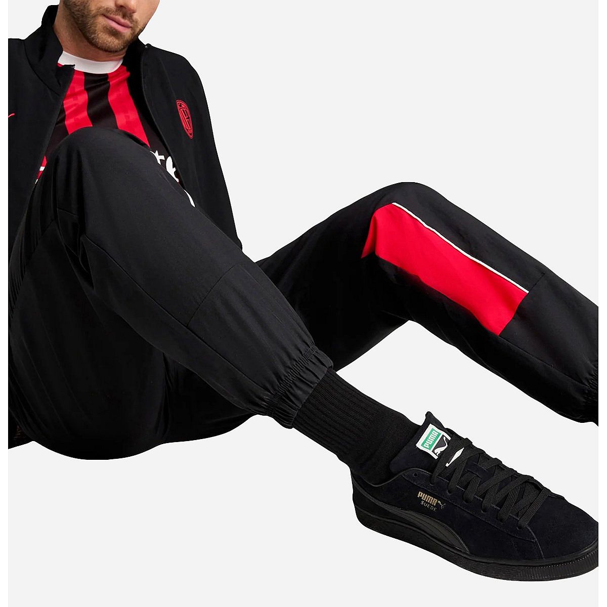 Toon jouw trots voor de Rossoneri met de AC Milan Archive Broek voor senioren van Puma! Deze zwarte broek is ontworpen voor voetbalprofs en fans, met een comfortabele pasvorm en een stijlvol ontwerp dat je telkens weer in de spirit van het team brengt. Dankzij de praktische ritszakken en de platte biezen van mesh is deze broek perfect voor iedere gelegenheid.