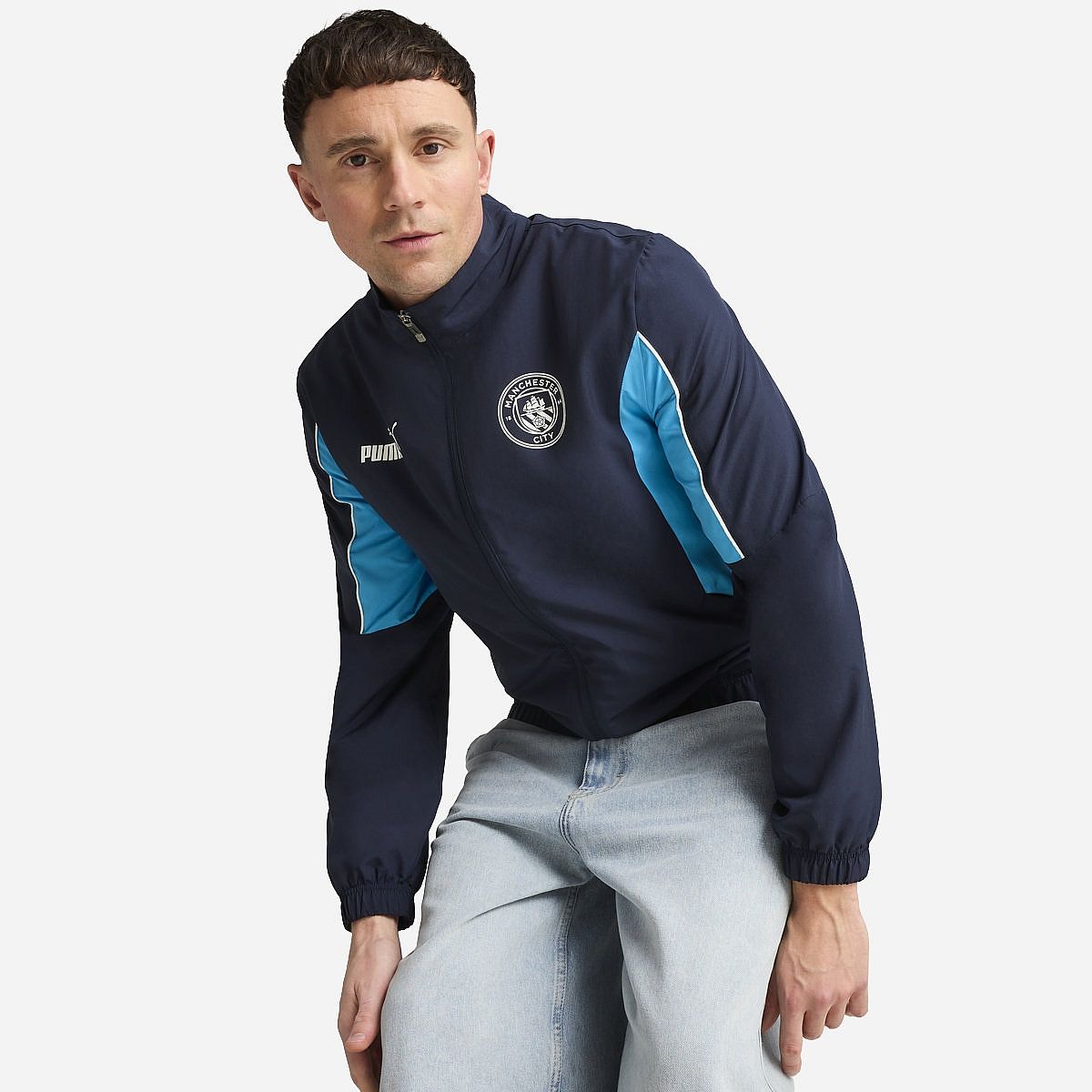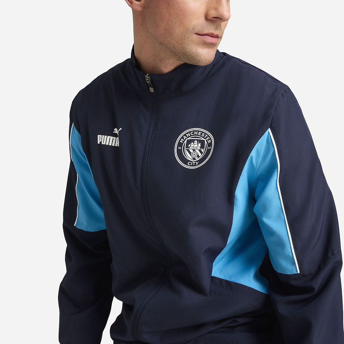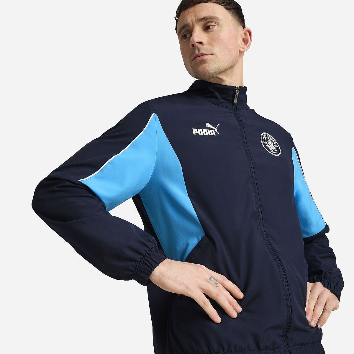 - Manchester City-badge op de linkerborst met PUMA Cat-logo op de rechterborst