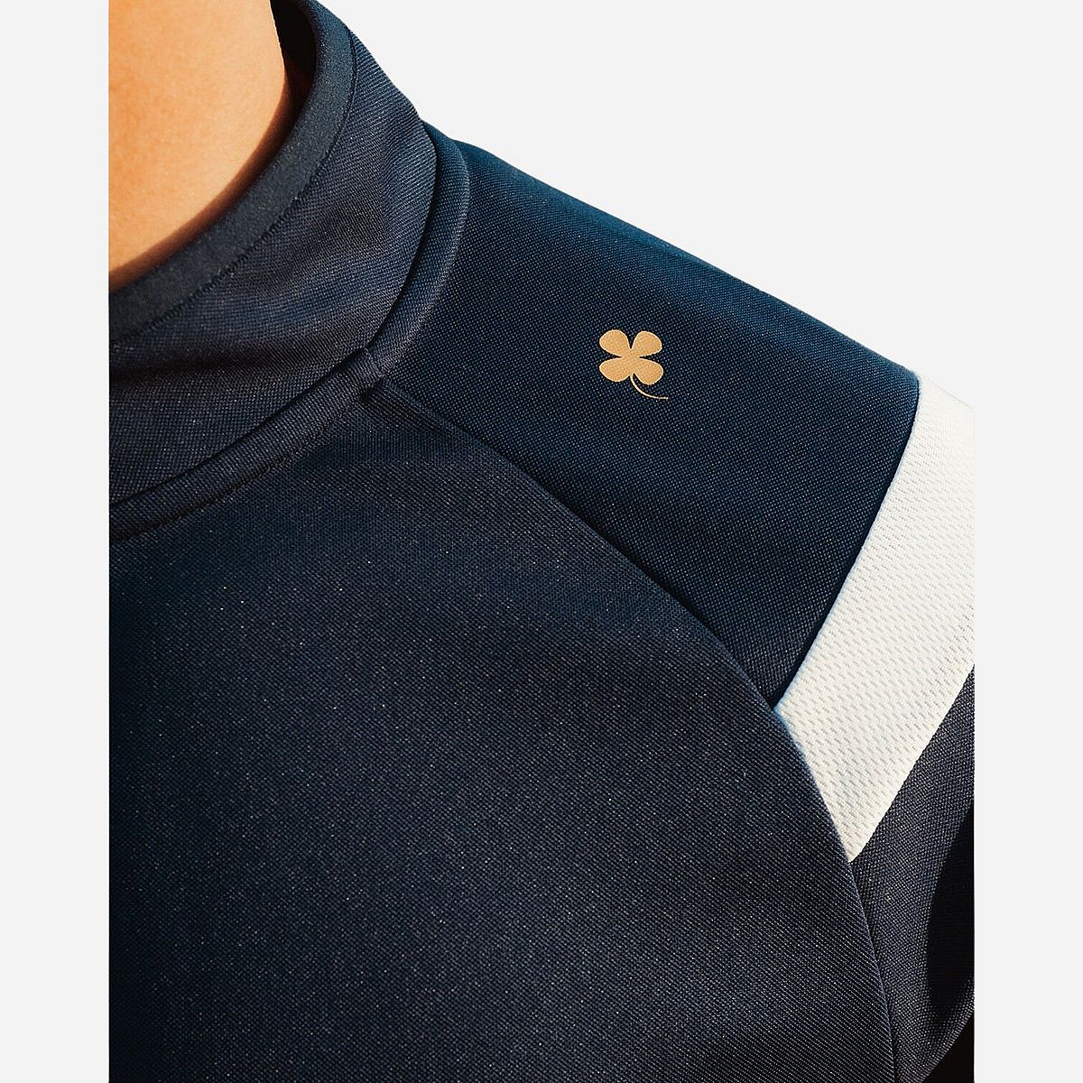 - Raglanmouwen en ventilerende schouderpanelen geven je de vrijheid om je volledig te bewegen en je prestaties te optimaliseren.