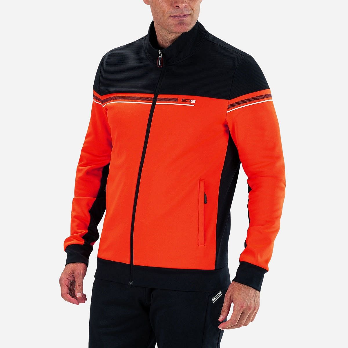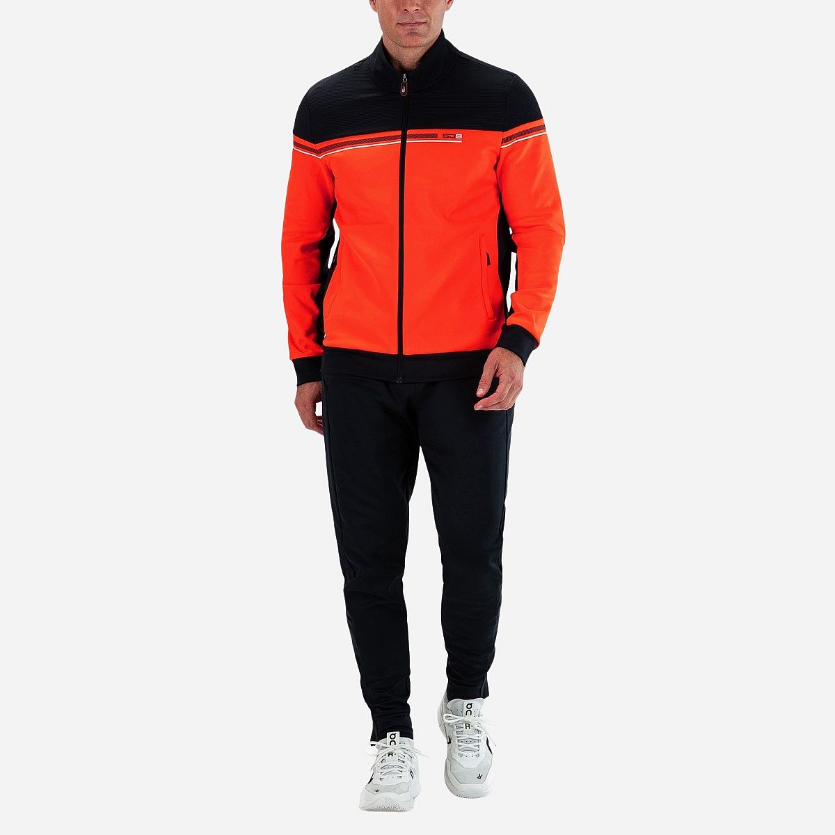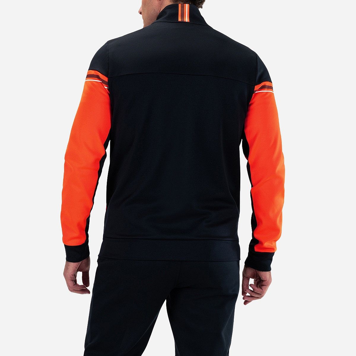 Maak kennis met het Abram Vest voor heren van Sjeng Sports, een sportief truienvest dat ideaal is voor tennisliefhebbers. Met zijn felle tangerine kleur en stijlvolle donkerblauwe bovenkant, biedt dit vest niet alleen een moderne uitstraling, maar ook comfort en functionaliteit voor je trainingen.