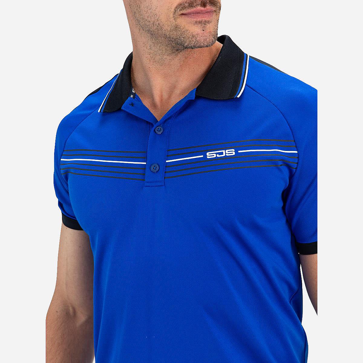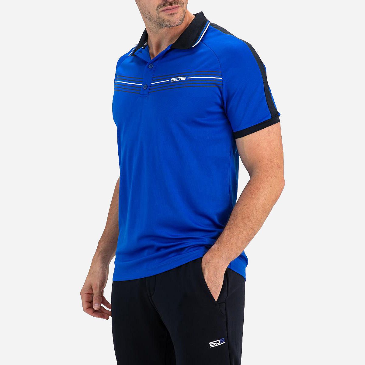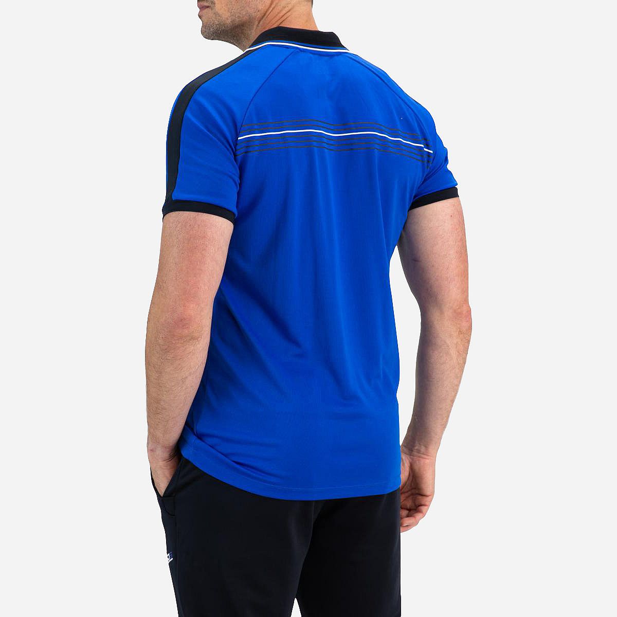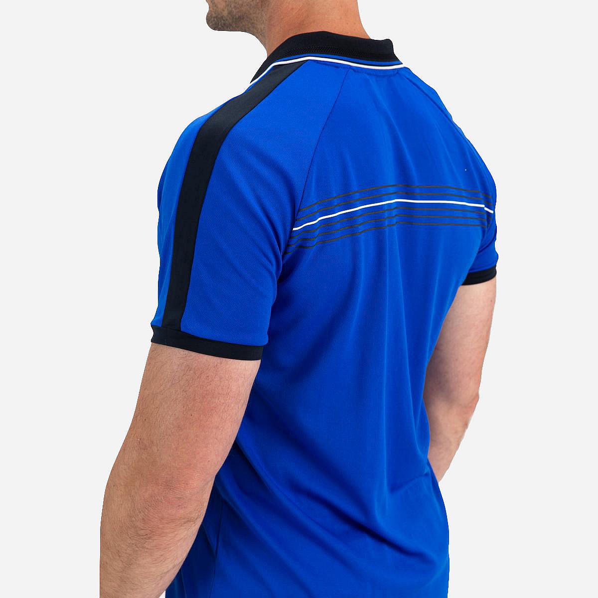 Dit sportieve heren poloshirt in de opvallende kleur blue neon is ideaal voor actieve dagen. Het is vervaardigd uit comfortabele single jersey en voegt een frisse uitstraling toe aan je sportoutfit. De contrasterende kleurdetails over de schouders en langs de mouwen geven dit shirt een modern accent.