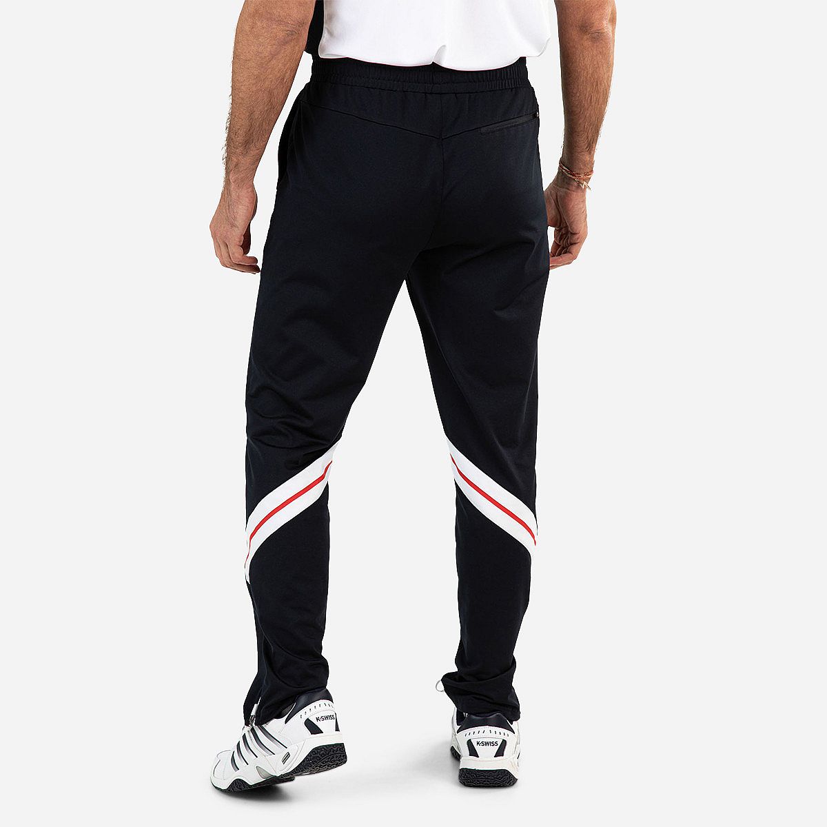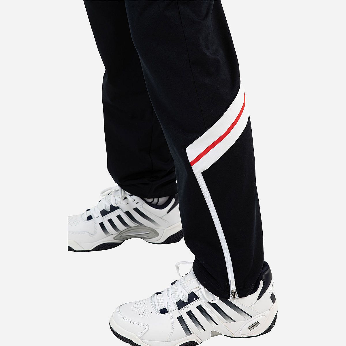 - Contrasterende inzetten bij de kuiten, die een sportieve uitstraling creëren