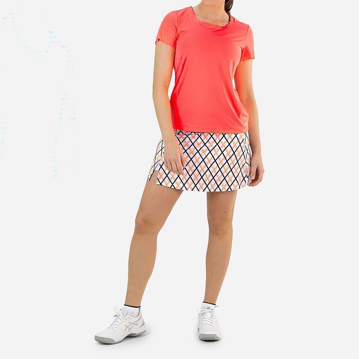 Maak kennis met het Imke T-Shirt voor dames van Sjeng Sports, een must-have voor jouw garderobe! Dit single jersey t-shirt in de opvallende kleur flame coral combineert moeiteloos comfort en stijl. Met het losse silhouet en de delicately geschulpte randen langs de hals en mouwen straalt dit shirt een elegante vibe uit, perfect voor zowel sportieve als casual gelegenheden.