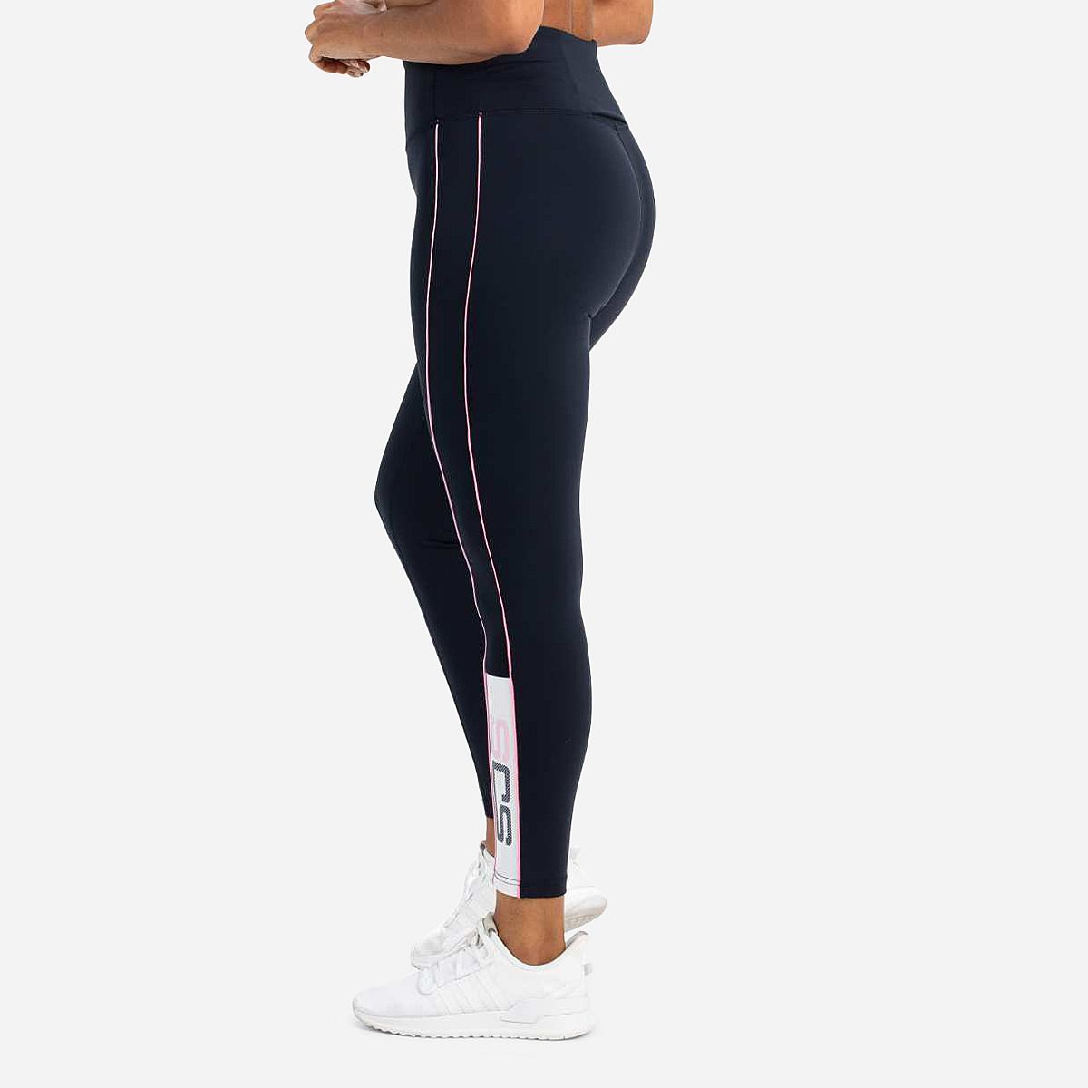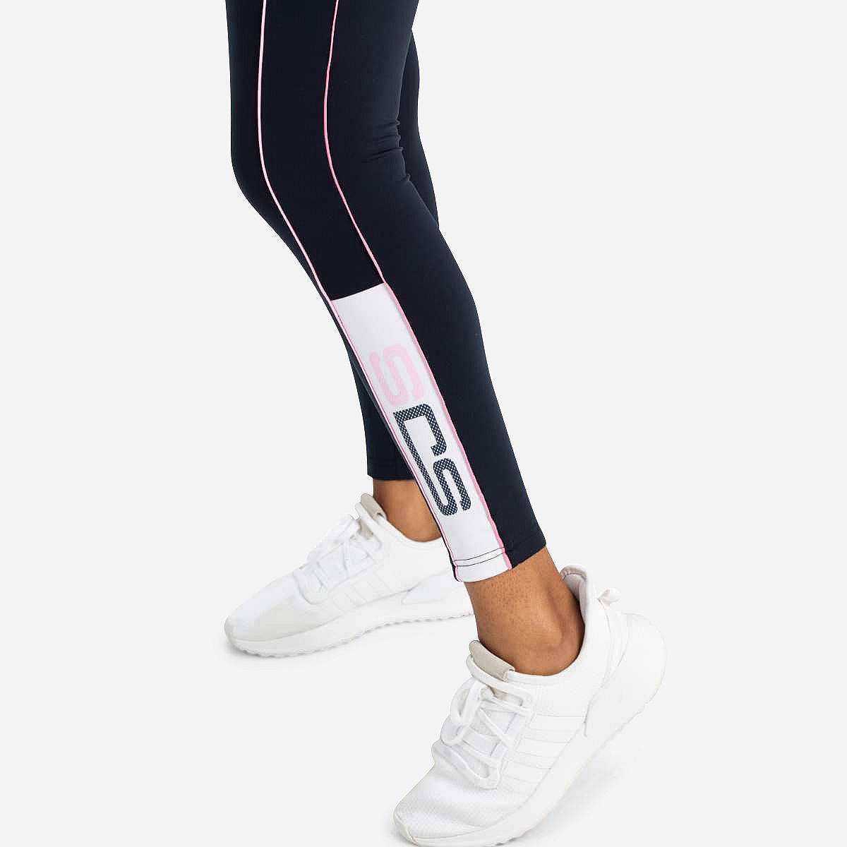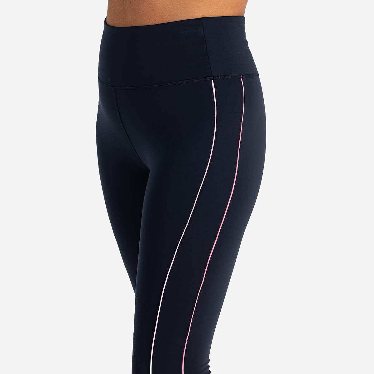 Deze legging is de perfecte combinatie van stijl en functionaliteit. Gemaakt van donkerblauwe multistretch jersey, biedt deze legging optimaal comfort tijdens al jouw sportieve activiteiten. De smalle contrasterende strepen langs de pijpen en de inzetten met het Sjeng Sports logo onderaan bij de enkels maken deze legging tot een echte blikvanger.