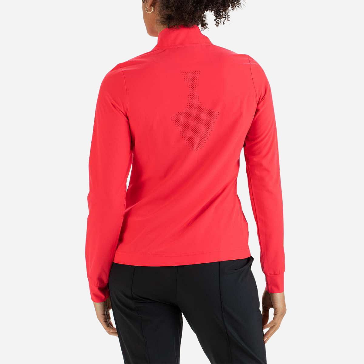 Maak kennis met ons stijlvolle dames trainingsjack, ontworpen voor optimale prestaties en comfort. Dit jack is vervaardigd uit lichtgewicht, mechanisch stretchmateriaal en heeft perforaties op het rugpand voor extra ventilatie. De levendige kleur watermelon rood, aangevuld met unieke opgedrukte siliconen strepen aan de onderkant van de mouwen en bij de taille, zorgt ervoor dat je er altijd fantastisch uitziet!