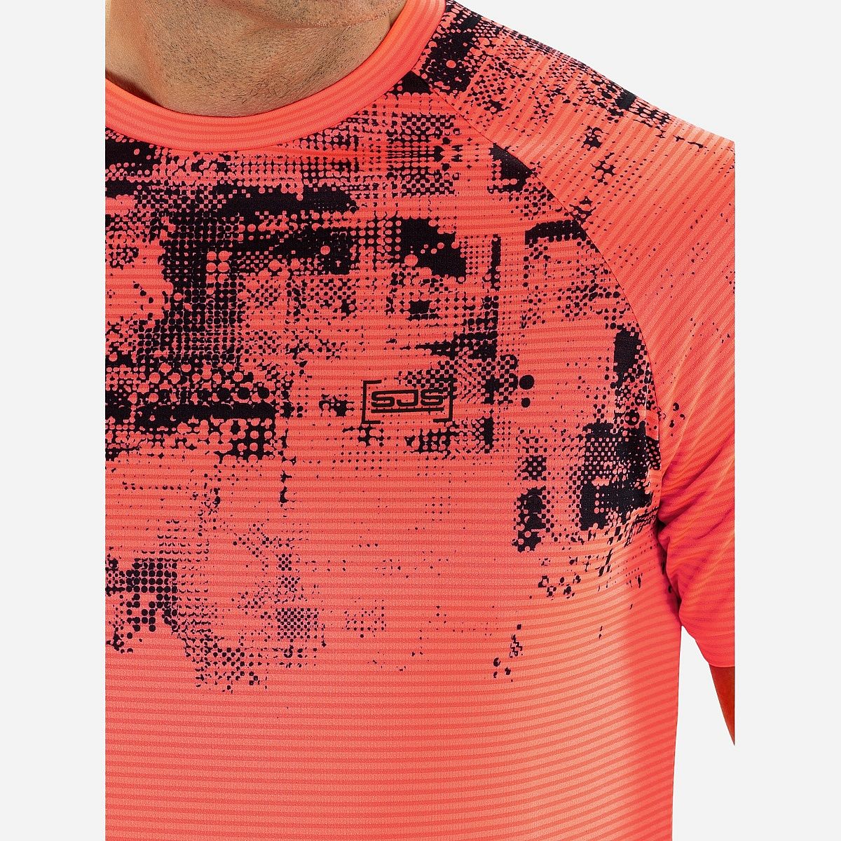 - Het T-shirt is gemaakt van zwarte single jersey, wat zorgt voor een comfortabele fit tijdens het sporten.
