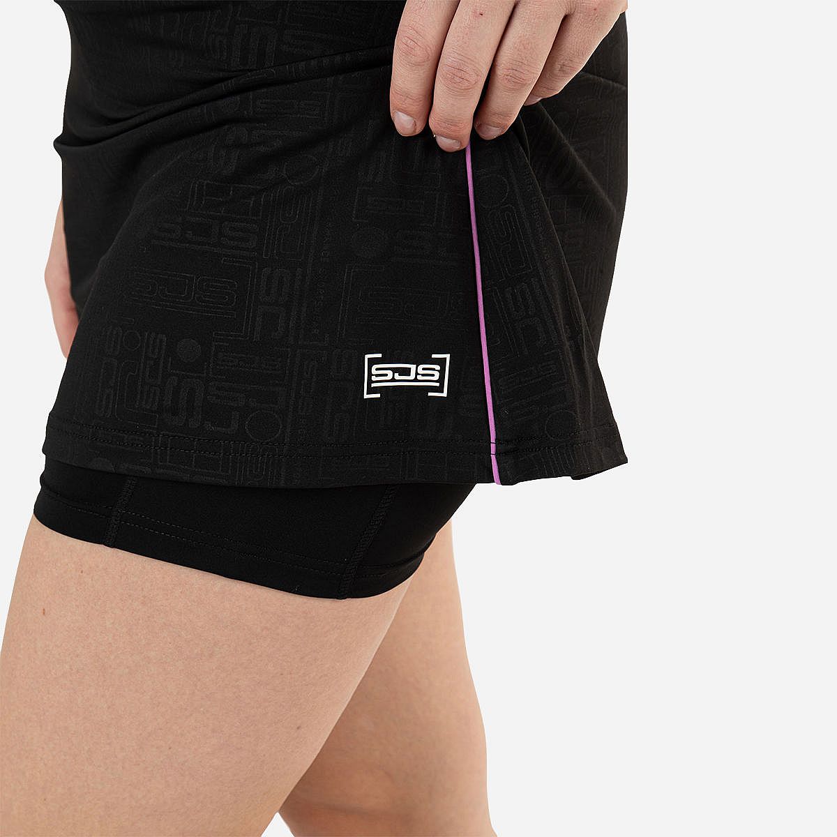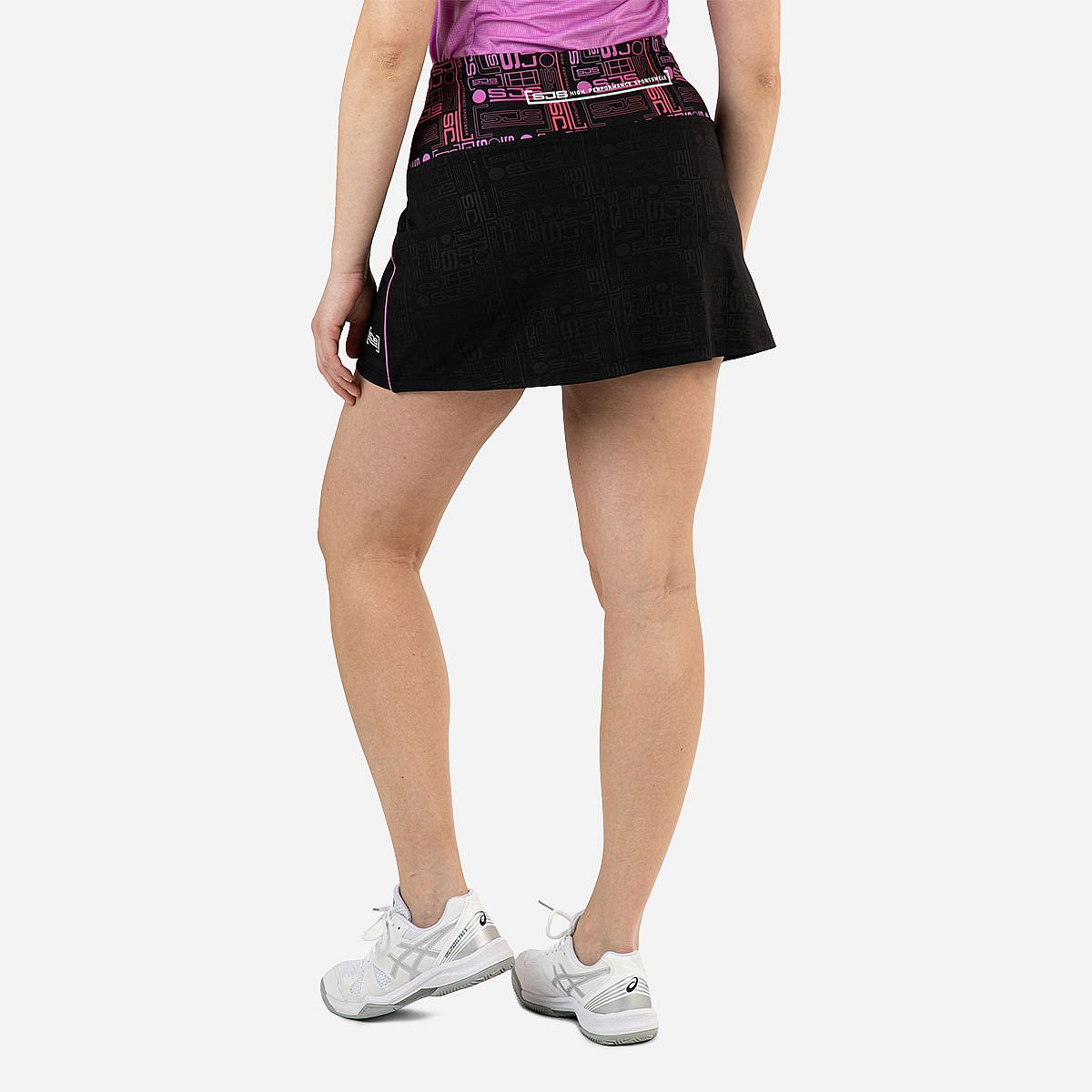 De Offra Rok Dames van Sjeng Sports is de perfecte combinatie van stijl en functionaliteit voor elke padelenthousiast. Deze zwarte skort van single jersey ziet er niet alleen fantastisch uit, maar biedt ook het comfort dat je nodig hebt tijdens je spel. Met een kleurrijke all-over print aan de bovenkant en contrasterende biezen aan de zijkanten, ben je verzekerd van een sportieve uitstraling.