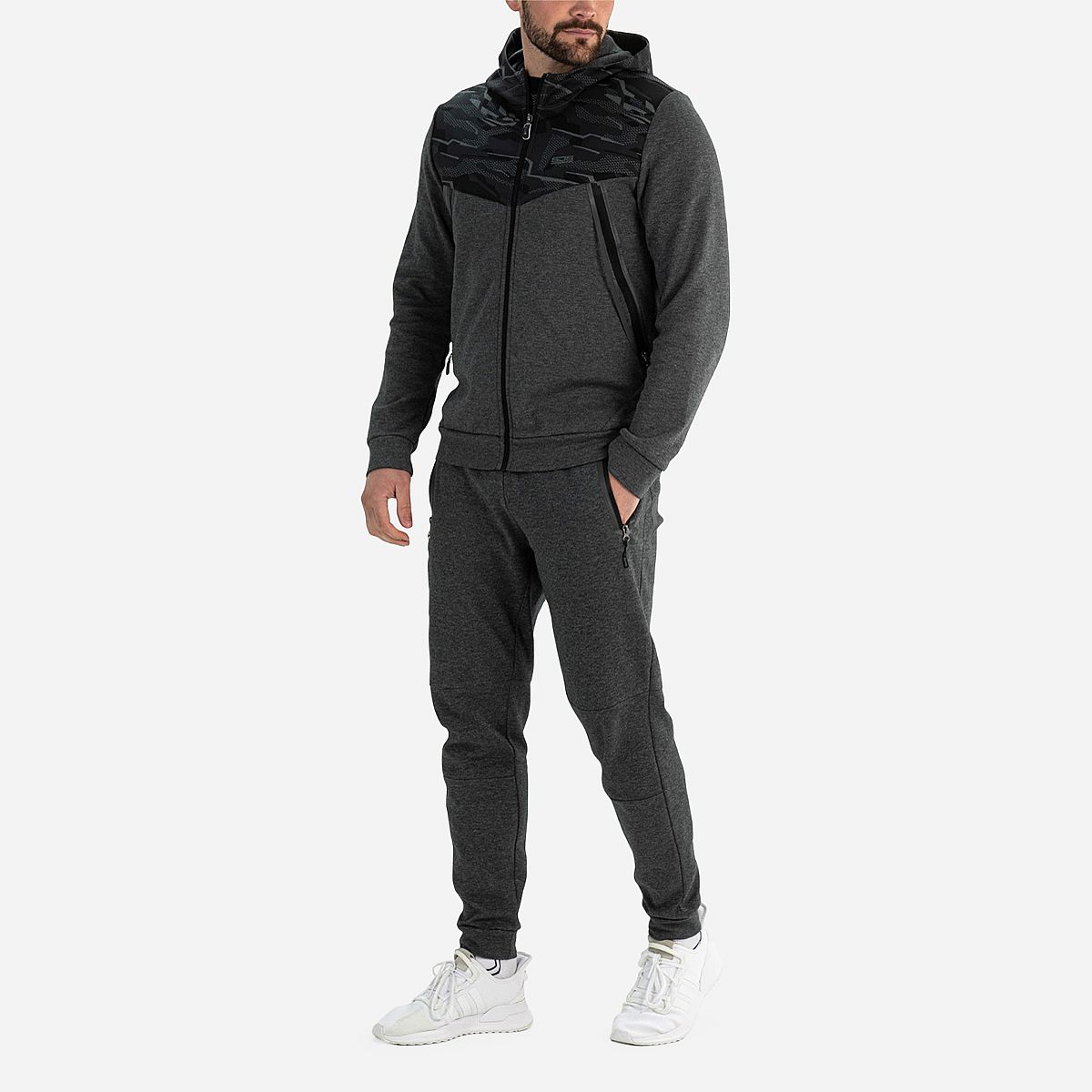 Maak kennis met het Pharrel Vest voor heren van Sjeng Sports. Deze comfortabele fleece hoodie in de kleur dark grey melange is perfect voor zowel sportieve activiteiten als casual momenten. Met zijn stoere all-over prints op de schouders en capuchon geef je je outfit net dat beetje extra flair.