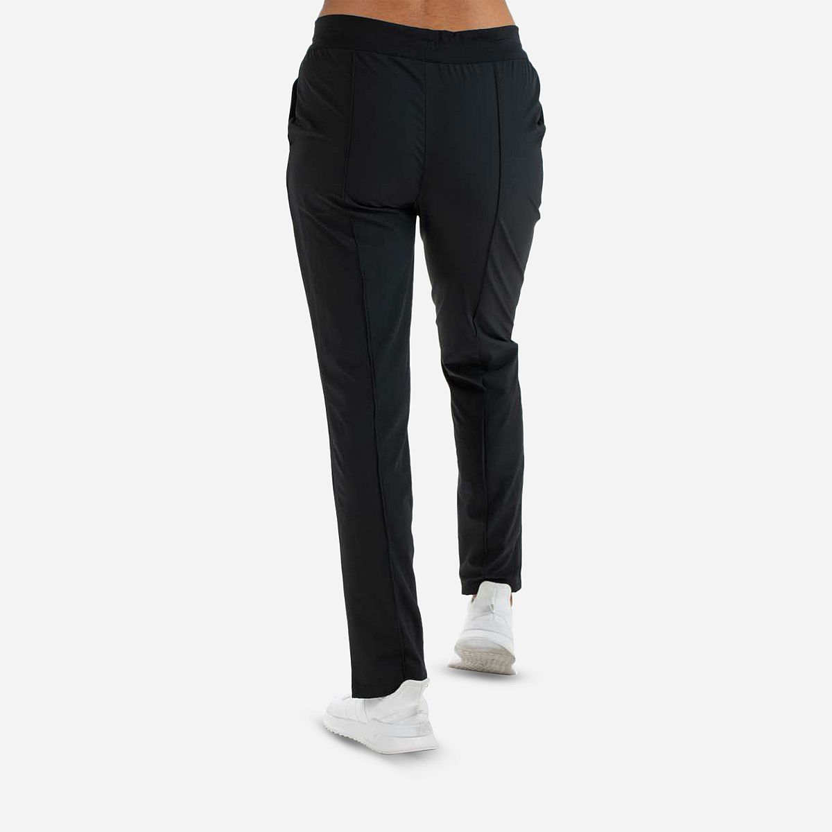 Maak kennis met onze stijlvolle zwarte dames trainingsbroek, die perfect is voor een actieve levensstijl. Met splitjes onderaan de pijpen en verticale biezen aan de voorzijde van de benen, combineert deze broek elegantie met functionaliteit. Gemaakt van lichtgewicht en zeer elastisch mechanisch stretchmateriaal, biedt deze trainingsbroek optimaal comfort tijdens al je trainingen.