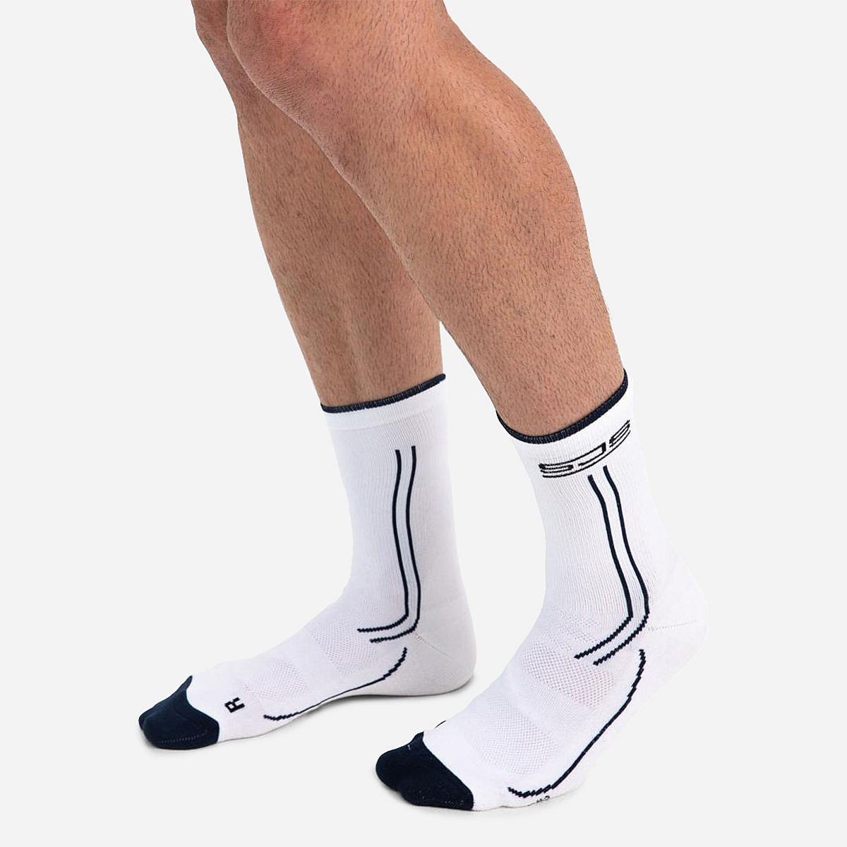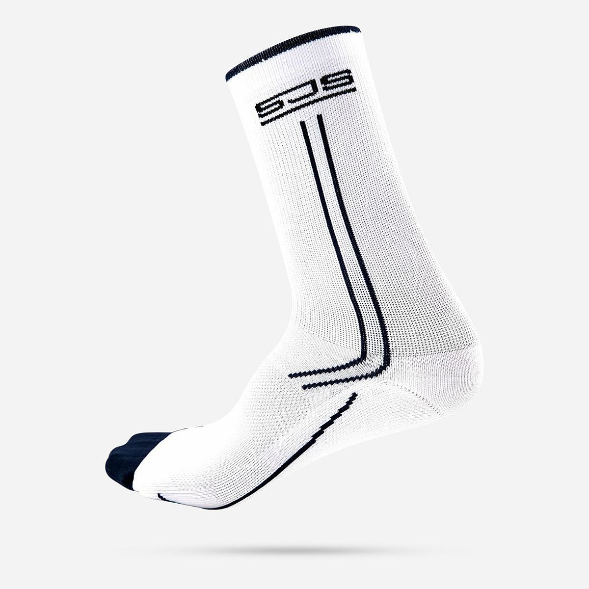 Ontdek onze heren sportsokken met een opvallende print van het Sjeng Sports logo aan de zijkant. Deze stijlvolle witte sokken zijn versierd met strepen langs de zijkanten en de voet, en hebben gekleurde tenen en hielstukken. Dankzij de Polygiene-technologie blijven ze langdurig fris, ideaal voor elke sportieve gelegenheid.