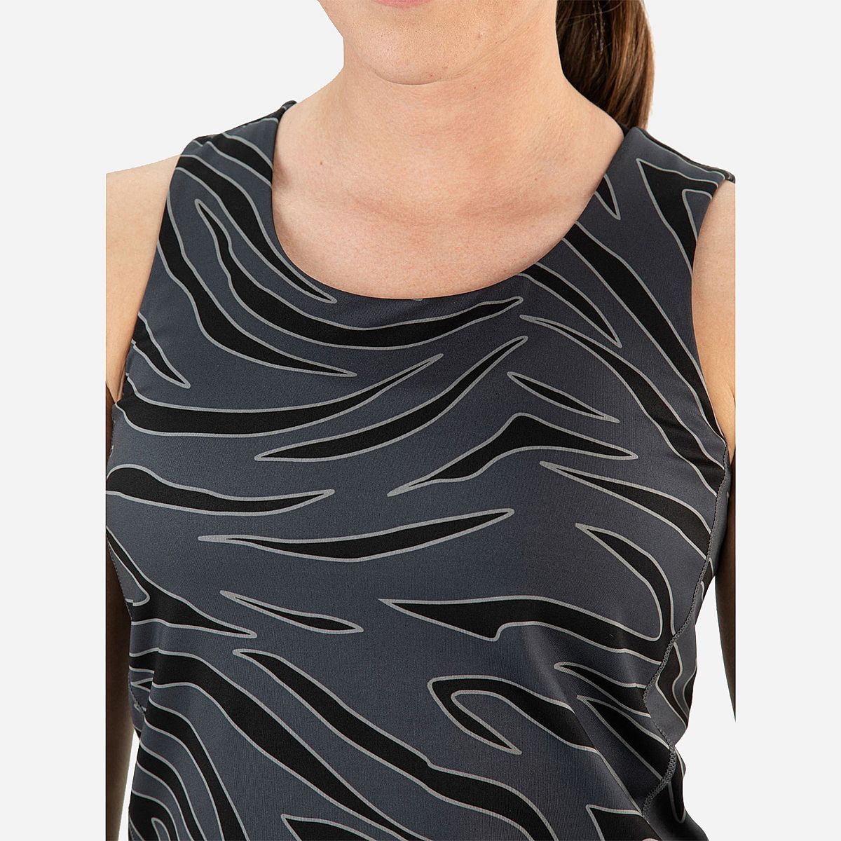Ontdek de Unica Singlet voor dames van Sjeng Sports, dé ideale sporttop voor elke workout. Deze zwarte sporttop met een opvallende all-over tijgerprint is ontworpen voor zowel stijl als functionaliteit. Het gebruiksvriendelijke ontwerp met ingebouwde beha zorgt ervoor dat je optimaal ondersteund wordt tijdens al je activiteiten.