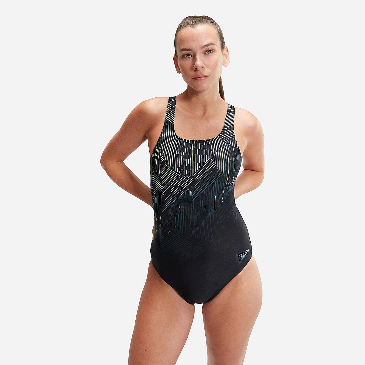 Behaal je fitnessdoelen met ons opvallende Medalist-badpak, dat voorzien is van een trendy abstract motief. Dit geliefde ontwerp, een echte Speedo-klassieker, biedt een medium beenuitsnijding en een open rug voor optimale schouderbeweging en comfort tijdens je training. Daarnaast zorgt de verbeterde buste-ondersteuning en een comfortabele elastische onderband ervoor dat je je volledig kunt concentreren op je workout.
