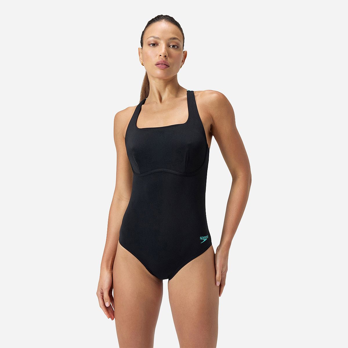 Maak kennis met het Eco+ Flex Band Badpak voor dames van Speedo! Dit innovatieve badpak is perfect voor elke zwemster die haar fitnessdoelen wil bereiken. Met een flatterende vierkante halslijn en een moderne racerback biedt het volop bewegingsvrijheid en uitstekende ondersteuning voor de buste.