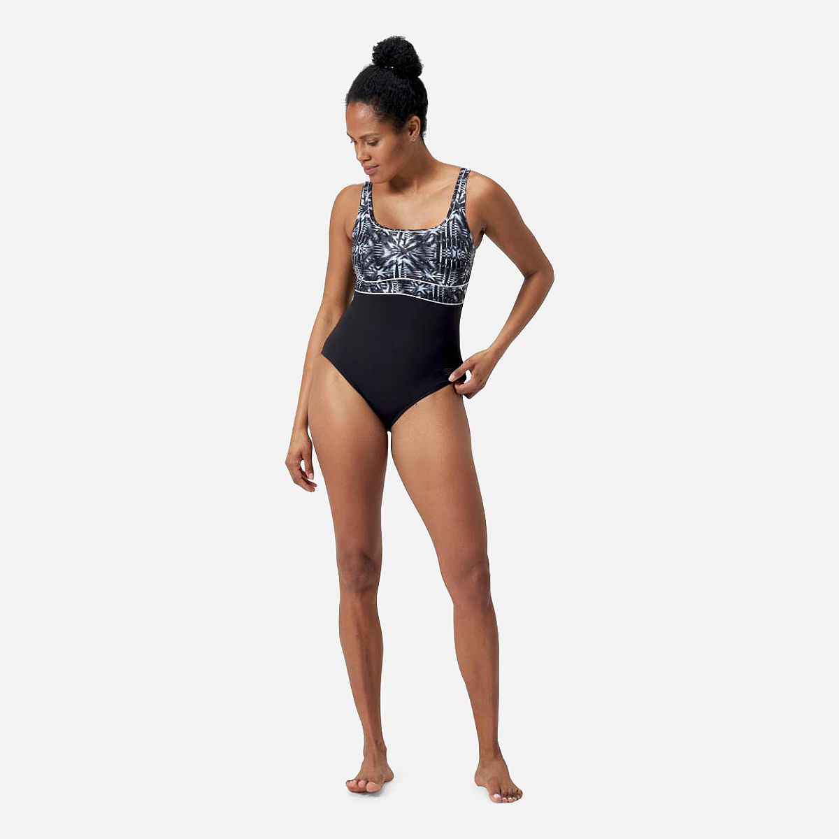 Het ContourEclipse badpak is de ideale keuze voor wie comfort en stijl wil combineren. Dit sportieve badpak heeft een vierkante halslijn en een prachtige print die de aandacht naar boven trekt en je figuur benadrukt. De verstelbare bandjes garanderen een perfecte pasvorm, terwijl de vormgevende stof en naden optimale ondersteuning bieden tijdens je training.