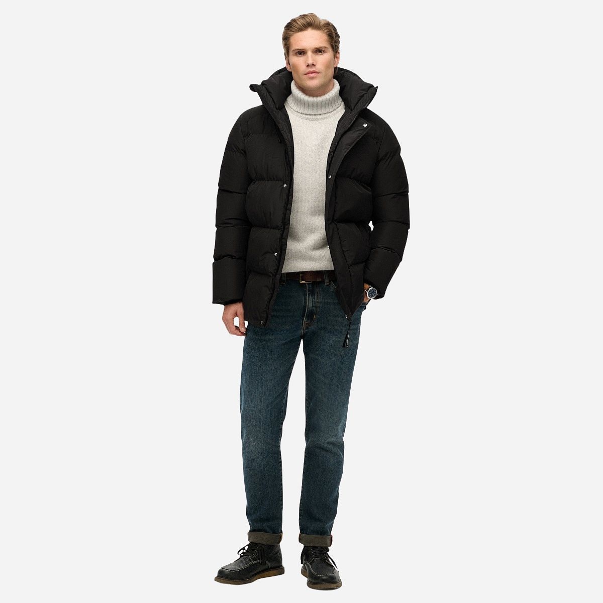 - Regelbare capuchon met aantrekkoord voor extra bescherming tegen wind en kou.