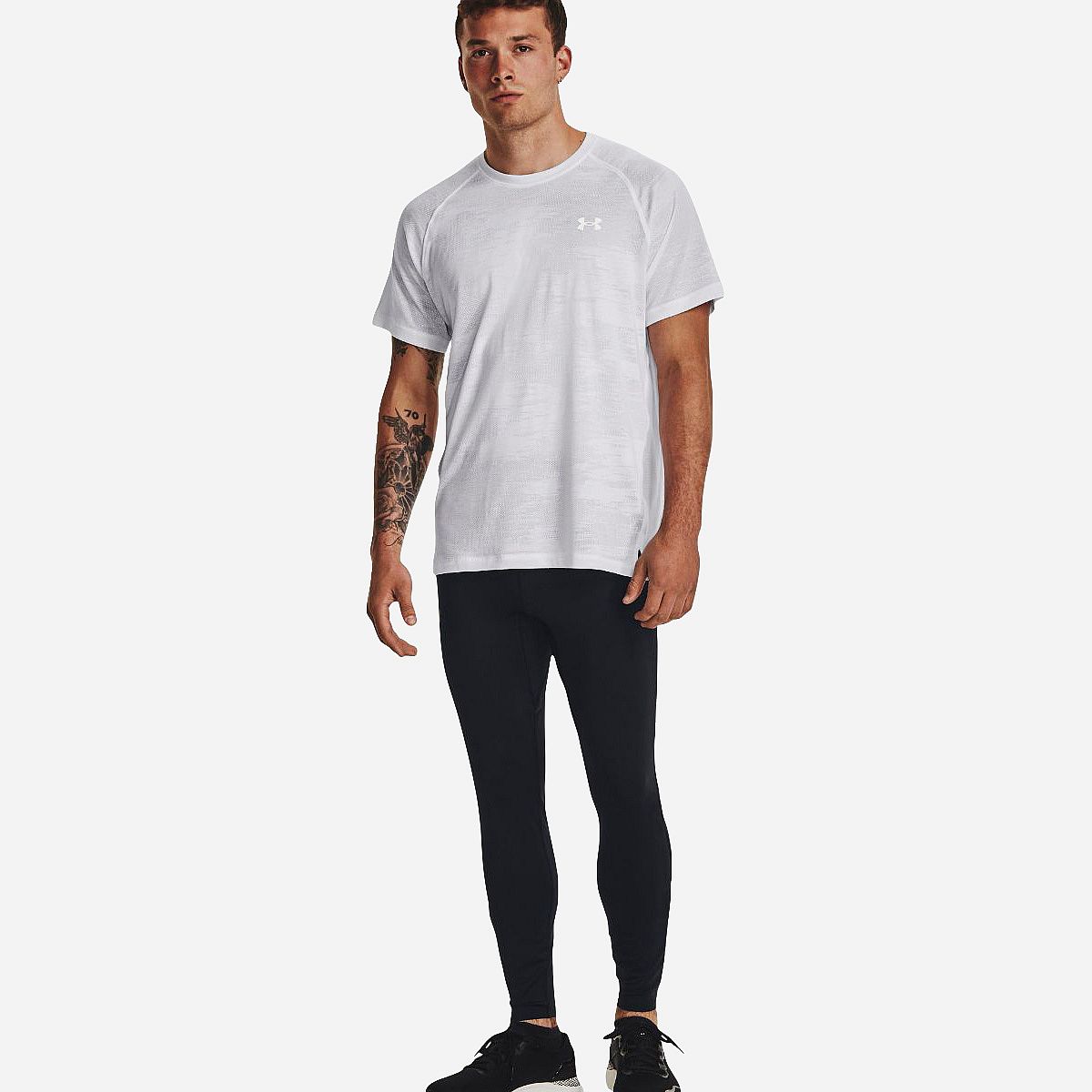 De superlichte HeatGear-stof biedt optimale dekking zonder zwaar aan te voelen, waardoor je je vrij kunt bewegen. Dit product heeft een handig uitvouwbaar zakje achterin de tailleband voor je telefoon, dat zowel waterbestendig is als zorgt dat je telefoon niet stuitert. Daarnaast voert het materiaal zweet effectief af en droogt het snel, terwijl het ook in vier richtingen rekt voor maximale bewegingsvrijheid. De omhulde, elastische tailleband is uitgerust met een trekkoord aan de binnenkant, en de omlopen enkelritsen maken het aan- en uittrekken eenvoudig.